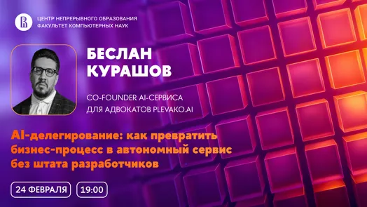 Центр непрерывного образования ФКН приглашает на бесплатный вебинар, посвященный вопросу использования инструментов искусственного интеллекта для автоматизации процессов бизнеса.