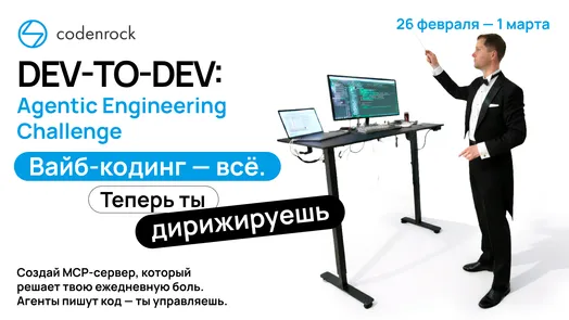Агенты пишут код — ты управляешь. Готов взять контроль? Регистрируйся на Dev-to-Dev: Agentic Engineering Challenge до 26 февраля: https://cnrlink.com/devtodeviteventhub