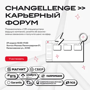 Успейте принять участие в Карьерном форуме от Changellenge >> — здесь вы сможете пообщаться с топ-компаниями напрямую, узнать про закрытые вакансии и реально повысить свои шансы на офер.