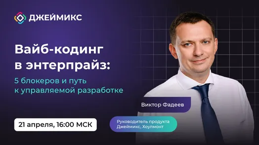 🚀 21 апреля (16-00 по мск) команда Джеймикс проводит вебинар на тему: «Вайб-кодинг в энтерпрайз: 5 блокеров и путь к управляемой разработке».